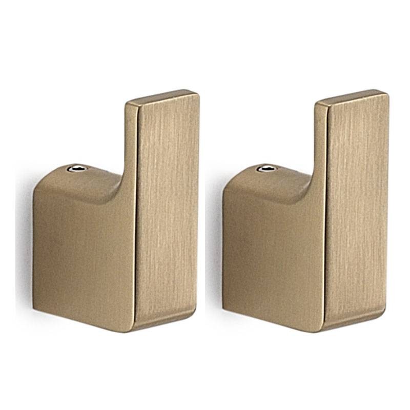 Percha para albornoz Gedy Pirenei 2 piezas, color oro mate, fabricada en acero y Cromall, dimensiones 2x3,3x5,3cm.