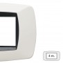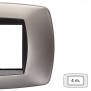 Placa Master Modo 4 módulos (frutas, lugares) color raíz de nogal. La placa se monta en los soportes 38004, 38004-F, o mediante el adaptador 39034 la placa es compatible con los soportes LN4704 y L4704 de las series Bticino Living y LivingLight.