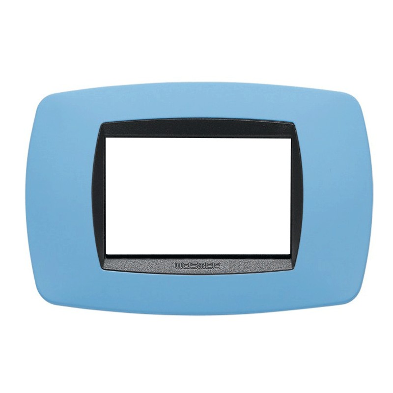 Placa Master Modo 3 módulos (frutas, lugares) azul suave. La placa se monta en los soportes 38003, 38003-F, o mediante el adaptador 39033 la placa es compatible con los soportes LN4703 y L4703 de las series Bticino Living y LivingLight.