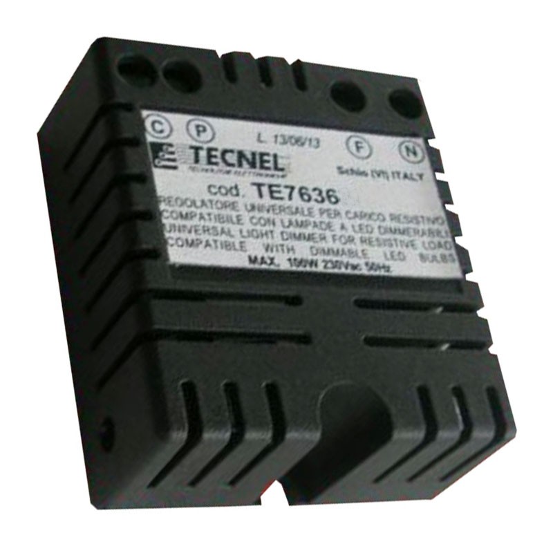 El regulador de potencia universal TE7636 es un regulador electrónico adecuado para controlar la mayoría de los tipos de lámparas del mercado. Mediante dos interruptores DIP es posible ajustar el modo de funcionamiento del regulador según el tipo de carga que se controla.