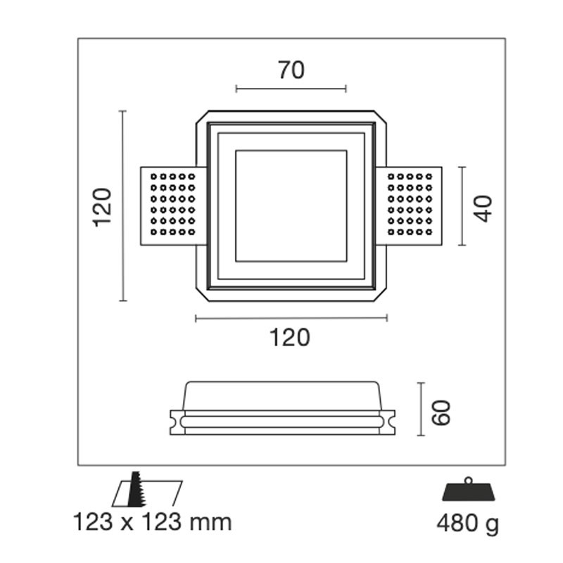 Century Jessy foco cuadrado de escayola empotrado Blanco con corredera JESSY-SQ120GLASS