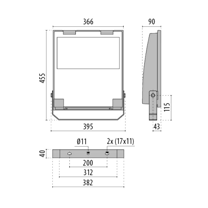 - Las versiones con óptica A50/W se fabrican con módulos LED y reflectores específicamente diseñados para contextos en los que se requieren distribuciones de luz con gran asimetría