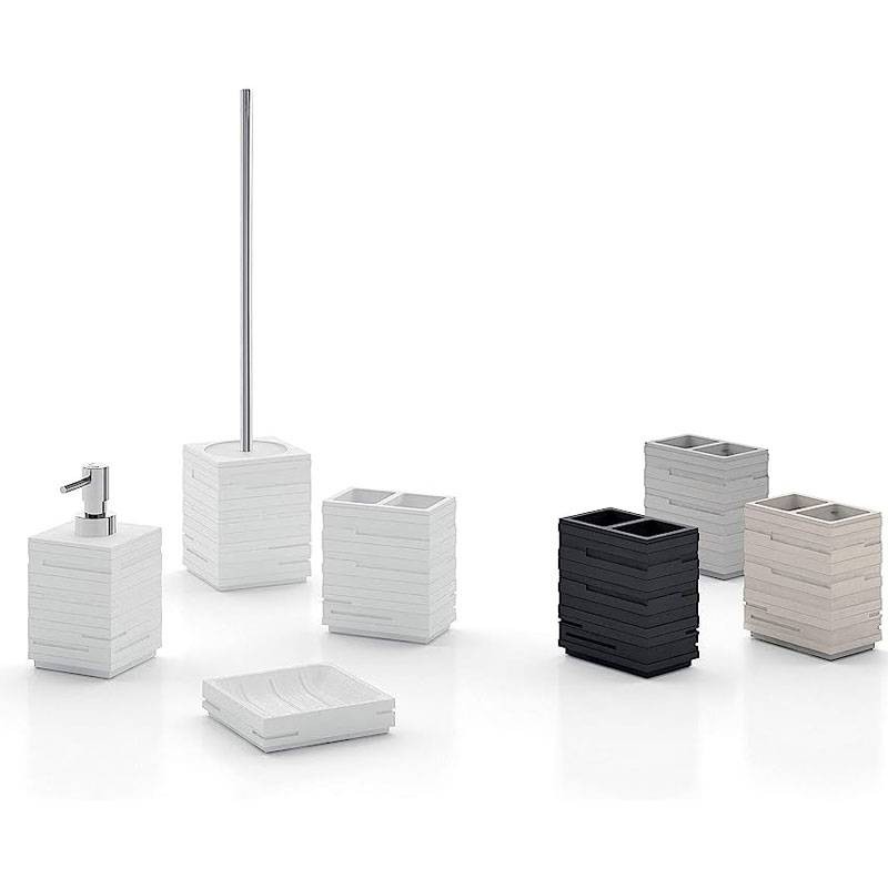 El diseño cuadrado y la textura distintiva de la colección Gedy Quadrotto confieren solidez a sus accesorios, que, al estar fabricados en resina, resultan muy ligeros y funcionales.