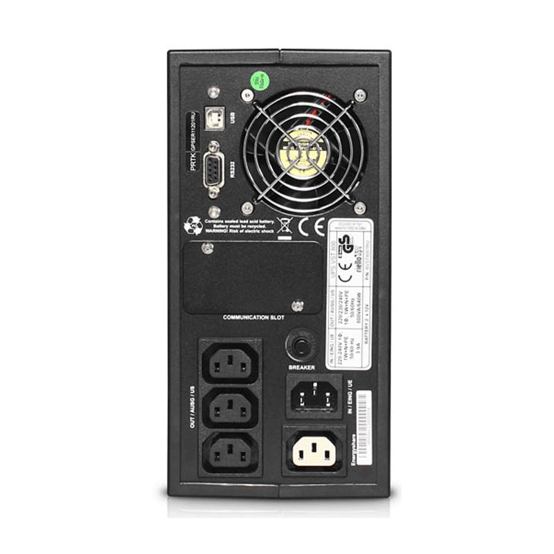 - La serie Vision utiliza la tecnología LINE INTERACTIVE y proporciona una salida sinusoidal. Esta tecnología consigue una eficiencia del 98% y, por tanto, un menor consumo de energía. También garantiza un alto nivel de protección contra las perturbaciones en la red. El dispositivo de regulación automática (AVR) proporciona protección contra picos, sobretensiones y subtensiones, sin intervención de la batería. La reducción del uso de la batería significa que las baterías estarán disponibles al 100% en caso de intervención y tendrás más autonomía. Los filtros EMI proporcionan una protección adicional contra los picos de tensión y los transitorios. En caso de fallo de la red eléctrica, la carga será alimentada por el inversor con una onda sinusoidal perfecta para una máxima continuidad y fiabilidad. Con el fin de ahorrar energía, la gama Vision ha sido equipada con un botón de bloqueo para restablecer el consumo de energía durante los períodos de inactividad prolongada.