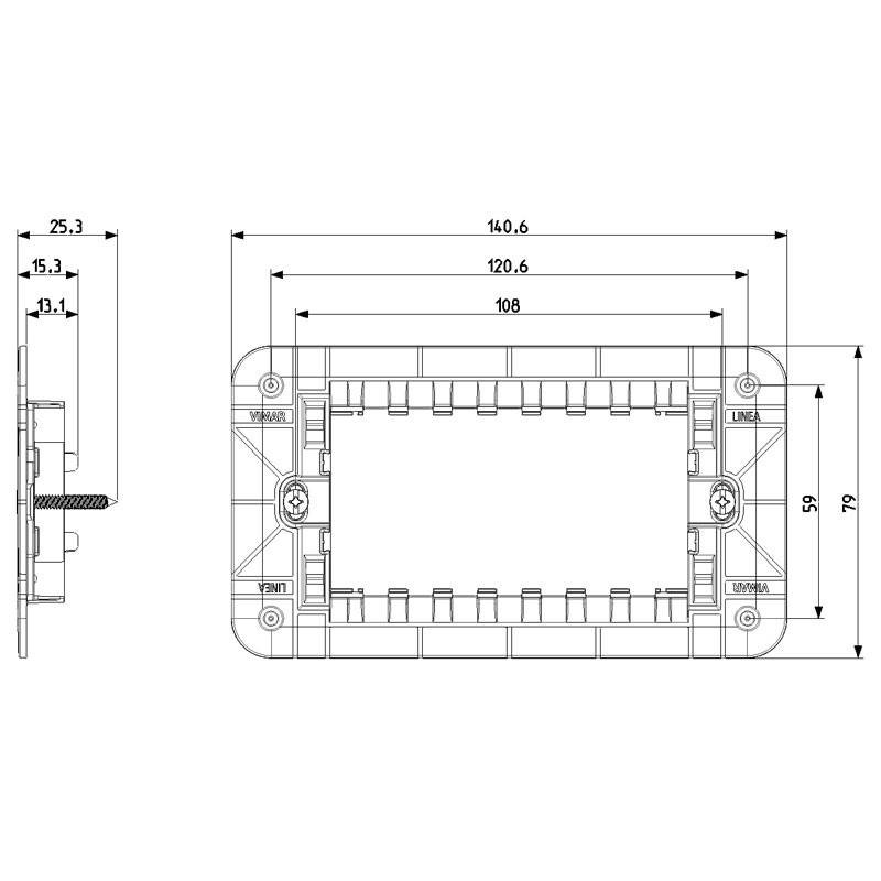 Soporta la serie Vimar Linea 4 Módulos, Para cualquier caja de empotrar rectangular universal 4 módulos, incluso no Vimar.