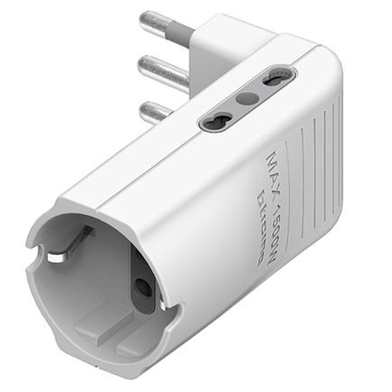 Bticino Adaptador de esquina 2 tomas de corriente de dos vías 1 toma de corriente alemana y enchufe de 16A blanco S3616DE