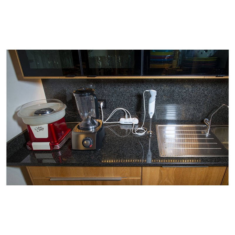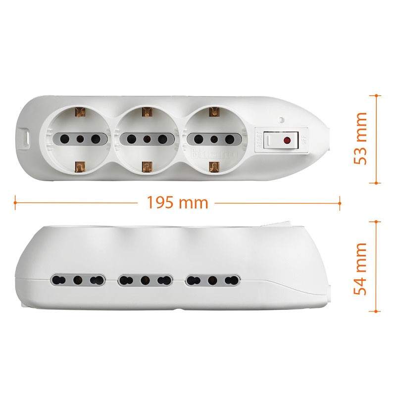 - Con 6 tomas de corriente de 2P+E de dos vías 10/16A y 3 tomas P30 alemanas