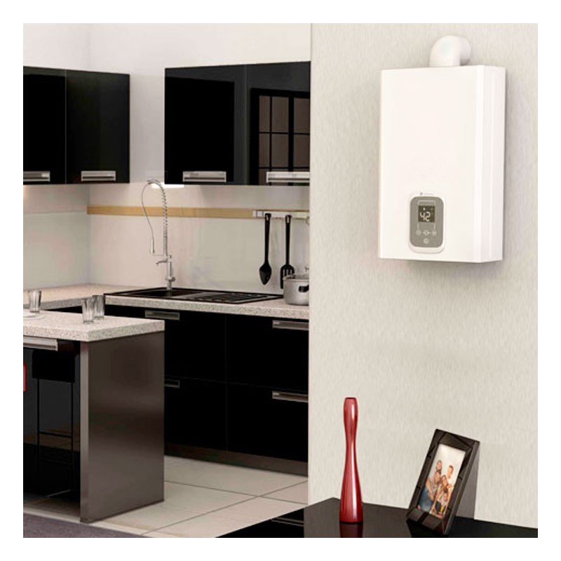 El innovador diseño con pantalla táctil LCD y las dimensiones supercompactas simplifican el uso, la instalación y el mantenimiento. El nuevo quemador tiene una tecnología de combustión por etapas con mezclas ricas y pobres para mantener las emisiones de NOx bajo control.