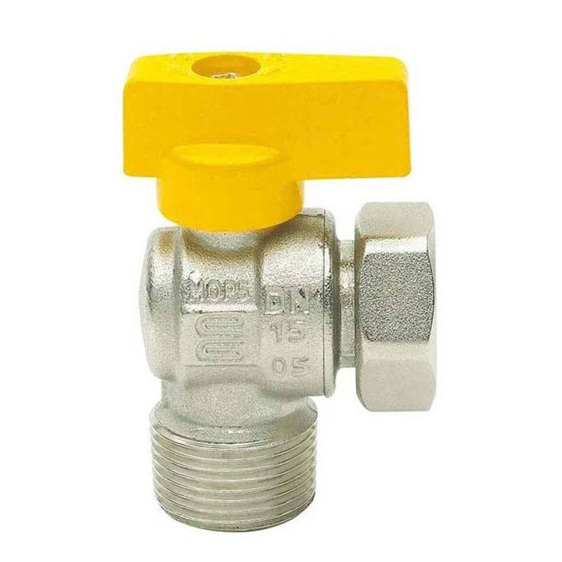 Válvula de bola Enolgas para gases combustibles, conexión de caldera 1/2 macho/rectangular con palanca de aluminio niquelado recubierta de plástico amarillo.