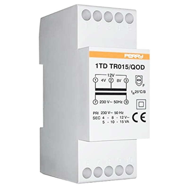 Transformador Perry 15VA salidas 4-8-12V 2 DIN 1TDTR015/QOD