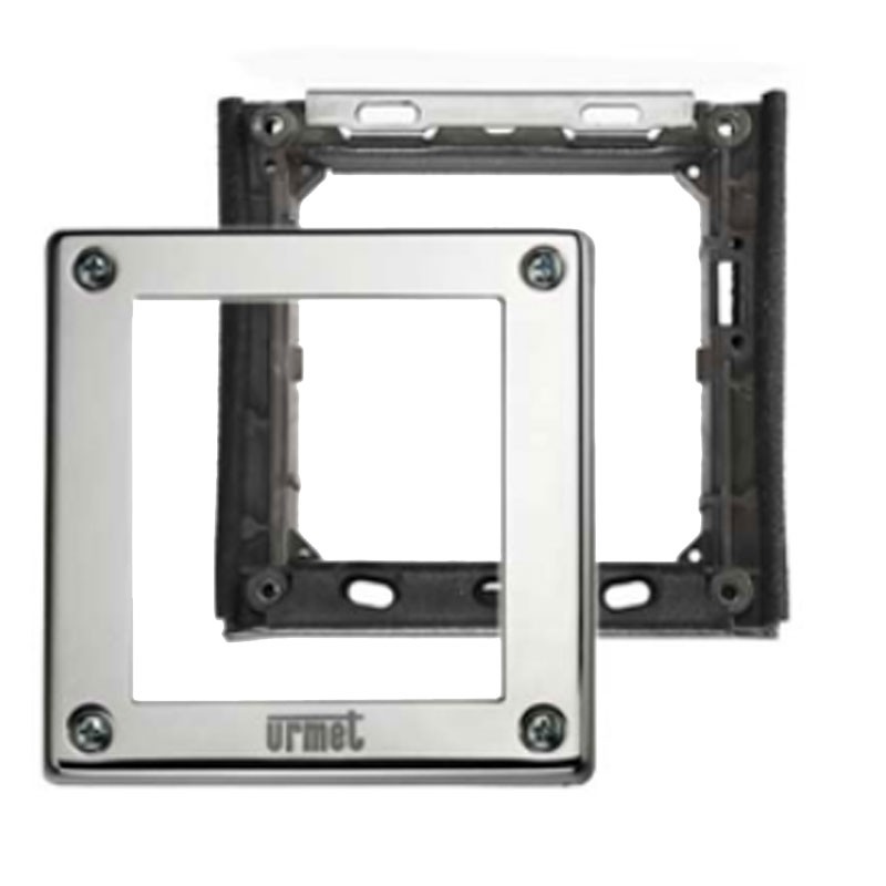 Marco portamódulos de urmet para un módulo de botonera Sinthesi Steel. Fabricado en acero inoxidable pulido, está preparado para un módulo. Dimensiones (Al x An) 119 x 125 mm: (Al x An) 119 x 125 mm.