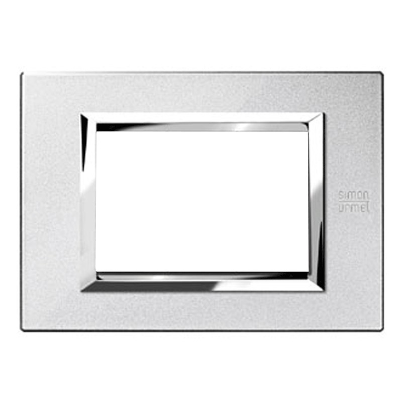 Expì Urmet Simon Nea placa 3 módulos (inserciones, lugares) color plata mercurio, de metal. Sólo se puede instalar en el soporte 10703N.
