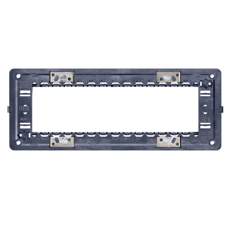 Soporte Urmet Simon Nea 7 módulos (plazas) con tornillos, para cajas 6/7 módulos. Este soporte permite enganchar todas las placas Urmet Simon Nea Flexa.