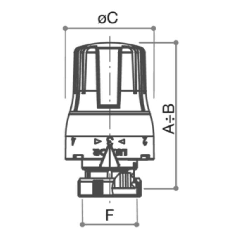 Gracias a un sensor situado en el interior del cabezal que actúa proporcionalmente sobre la apertura y el cierre de la válvula, se puede regular la temperatura dentro de una habitación. El cabezal termostático tiene la posibilidad de limitar o bloquear el rango de regulación.