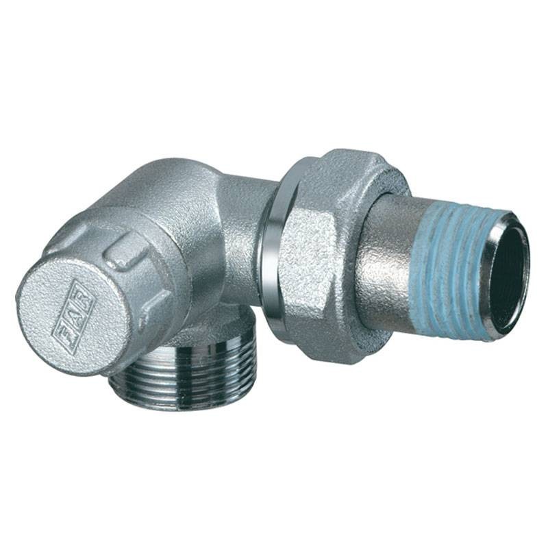- Detentor acodado, cromado, para radiadores con conexión para tubo de plástico y cobre multicapa, espiga preensamblada, junta entre espiga y cuerpo de la válvula en HPF, doble junta tórica en el vástago, tapón metálico de racor y caperuza de latón cromado. Temperatura máxima de servicio 95°C. Presión máxima de servicio 10 bar.