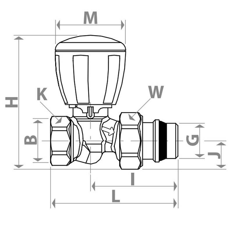 Válvula micrométrica recta Giacomini para radiadores con conexión tubo hierro con las siguientes características: