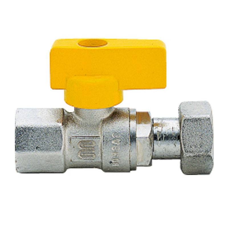 Grifo bola recta de gas combustible Enolgas Bon Gas con palanca de aluminio plastificado amarillo con las siguientes características: