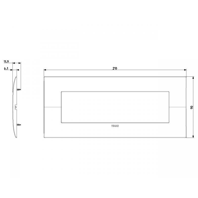 Placa Vimar FIT 7 módulos, color metal. Se aplicará sólo en el soporte 19917.