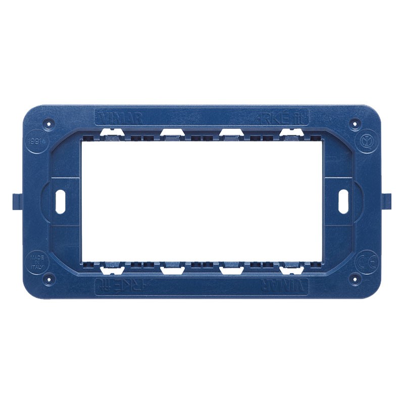 Soporte de módulos Vimar Arkè FIT 4 con tornillos, compatible únicamente con las placas de montaje empotradas de la serie Vimar FIT (código 19954). Para aplicar en cajas de empotrar estándar 4 Plazas (ejemplo V71304-V71704).