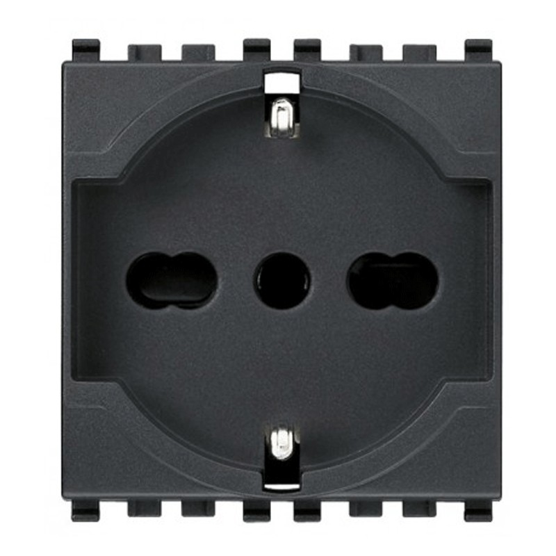 Toma Schuko Vimar Eikon 2P+E 16 A 250 V, norma italiana universal P40, color gris antracita, 2 módulos.