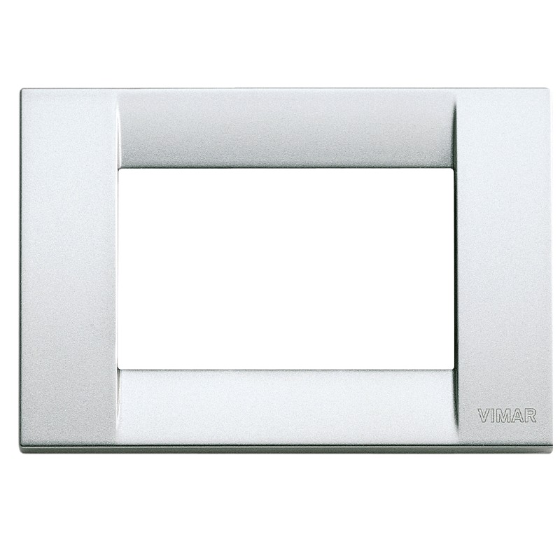 Placa clásica Vimar Idea 3 módulos, de metal fundido a presión, color plata metálico.