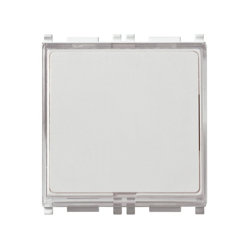 Pulsador de nombre Vimar Plana, 1P NO, 10 amperios, tensión 250V, con placa de nombre iluminable, para lámpara E10 10x28 mm 1W máx, 2 módulos.