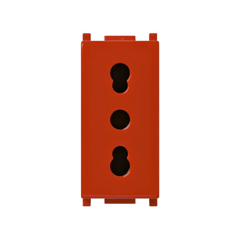 Vimar Plana Red Socket bipa. La toma de corriente bipas permite insertar tanto los enchufes 10A (enchufes pequeños) como los enchufes 16A (enchufes grandes).