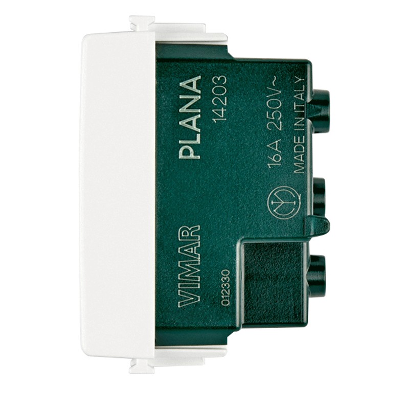 Toma de corriente de dos vías Vimar Plana, con las siguientes características: