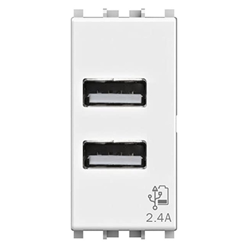 Double prise USB 4Box 2.4A pour Vimar Arke, 1 module blanc. Fonction de charge avec transformateur intégré.