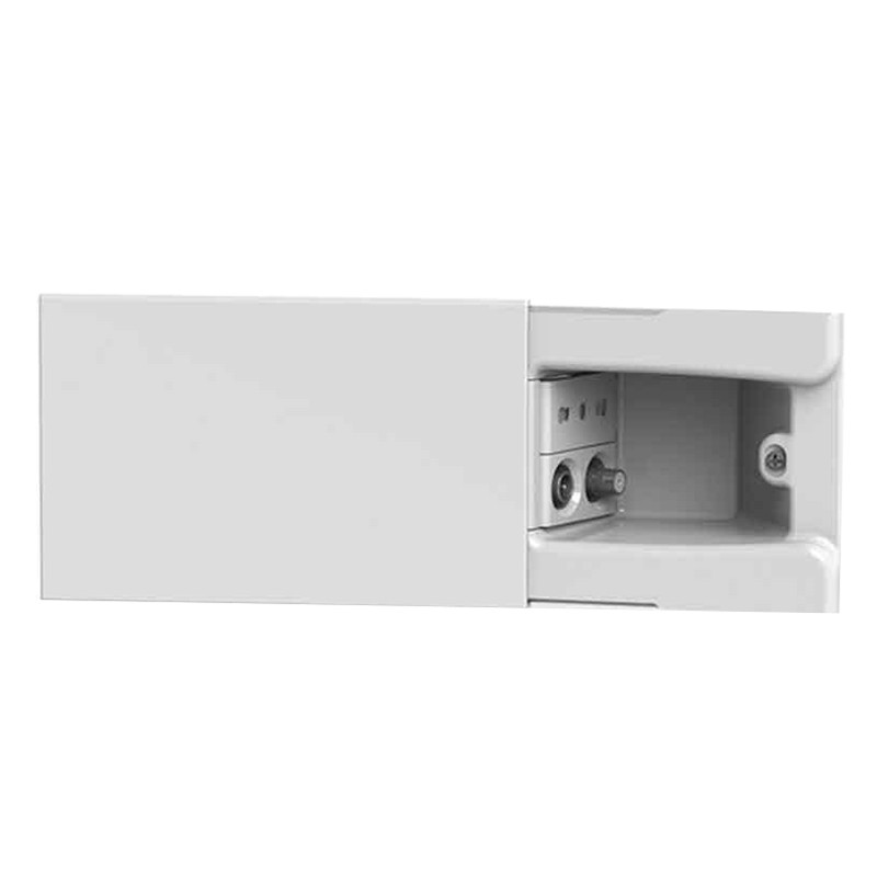 4box Hide TV/SAT prise directe et bidirectionnelle, avec cadre et couvercle coulissant, couleur blanche. Il possède un rabat qui permet de cacher les prises même avec des câbles insérés. Il doit être monté sur n'importe quelle boîte encastrée à 4 places. Il ne nécessite pas de support ou d'autres composants.