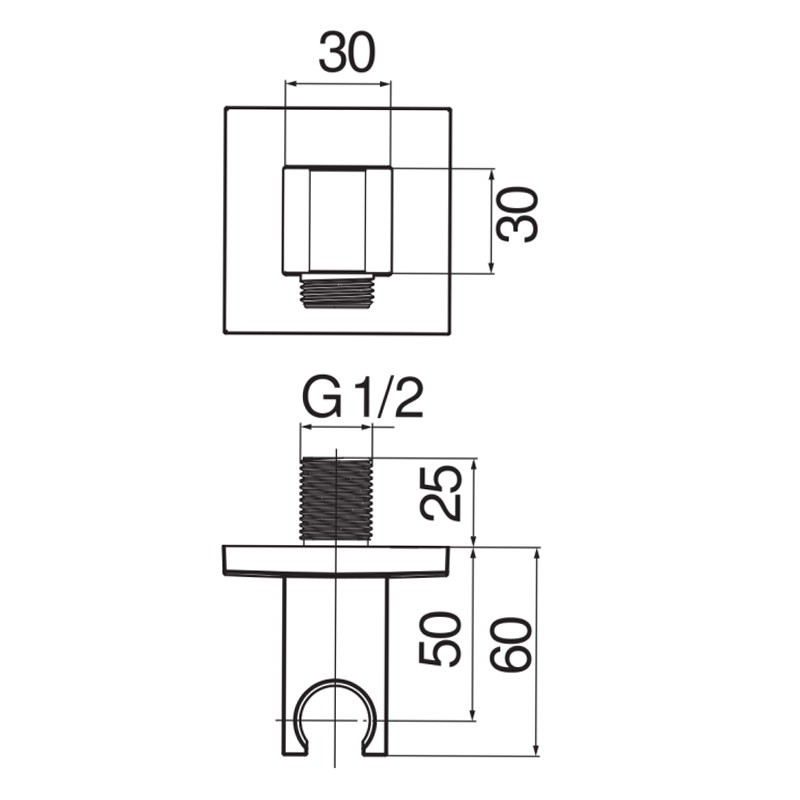La prise d'eau de Nobles avec le soutien de la rosace, de forme Carré, Chromé diamètre 1/2, 30x30