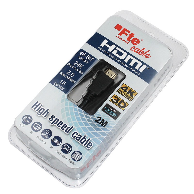Câble HDMI FTE professionnel de 3 mètres, supporte vidéo 3D, résolution 4K UltraHD, compatible avec la technologie HDR.