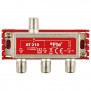 Dérivateur blindé FTE inductif en classe A terrestres et satellitaires de 5 à 2.400 Mhz, à une sortie de passage avec atténuation typique de 2 dB et deux sorties en dérivation avec atténuation de 10 dB.
