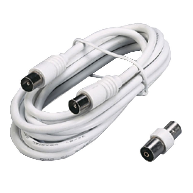 Câble d'extension linéaire TV Fanton de 3 mètres coaxiale, fiche et prise droites de diamètre 9,5 mm, plus adaptateur fiche/prise cod 32122.
