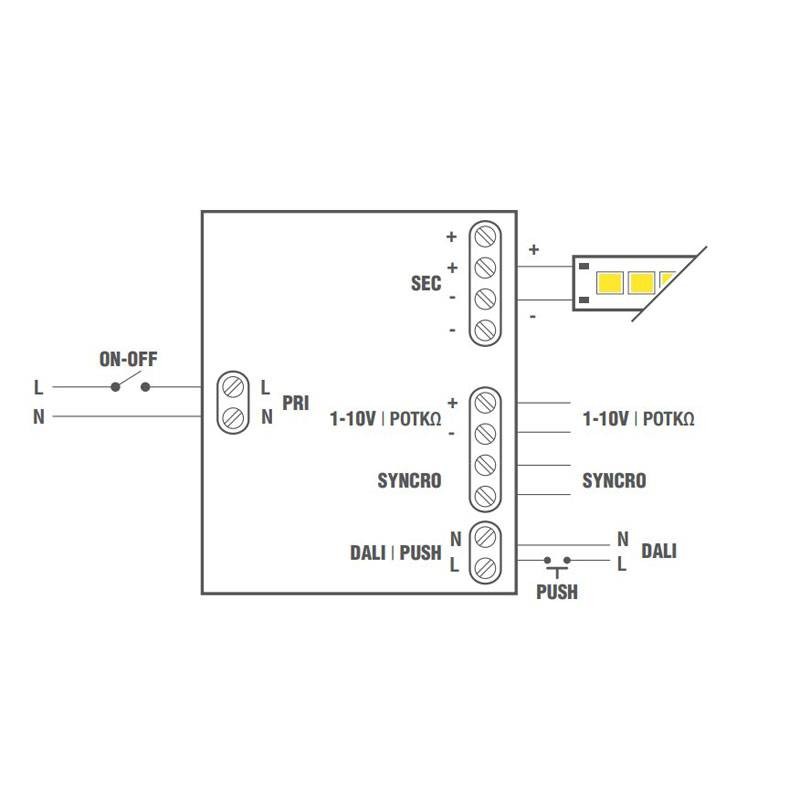 - Commandement : PUSH - DALI - 0-10V - 1-10V - POT47k