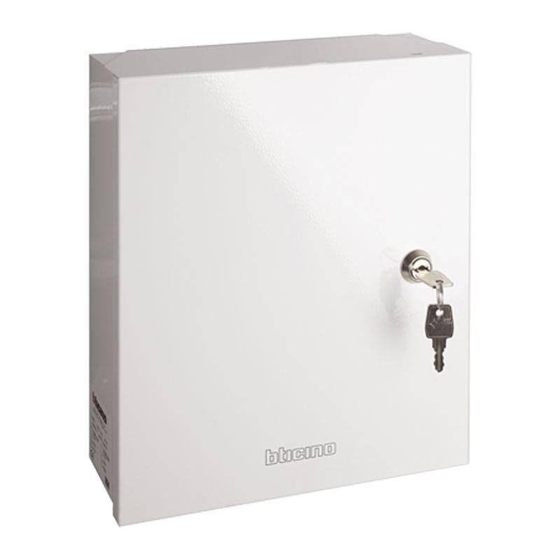 - Conteneur en métal blanc dimensions 255x295x85 mm (LxHxP) avec ouverture latérale et fermeture à clé, équipé d'un porte-fusible et d'un fusible de 2A et d'un bloc d'alimentation à découpage de 1,7A déjà câblé, idéal pour l'unité de commande art. 4200C. A compléter avec une batterie tampon 12V 7,2Ah, non incluse.