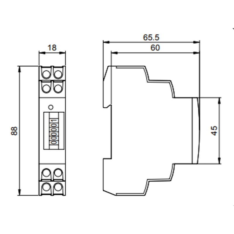 - Numérateur à 6 chiffres 5 unités (kWh) + 1 décimale (0,1 kWh) non réinitialisable