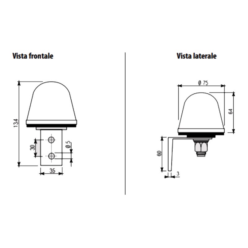 Interrupteur crépusculaire Vemer VEPAL sur poteau ou mural (via un support) permettant d'allumer une charge électrique en fonction de la luminosité ambiante. La sensibilité et l'hystérésis peuvent être réglées par le trimmer.