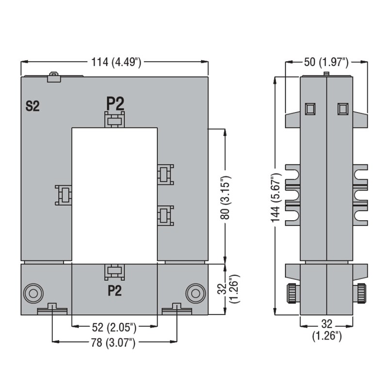 Ce sont des transformateurs de courant sans enroulement primaire et sont normalement utilisés pour des valeurs de courant primaire élevées à partir de 40A. Le nombre de passages du câble primaire ne change pas les caractéristiques de précision, mais réduit la valeur du courant primaire avec le même courant secondaire.