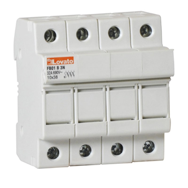 Porte-fusible Lovato 3 pôles + neutre 32A 10X38mm 4 modules FB01B3N
