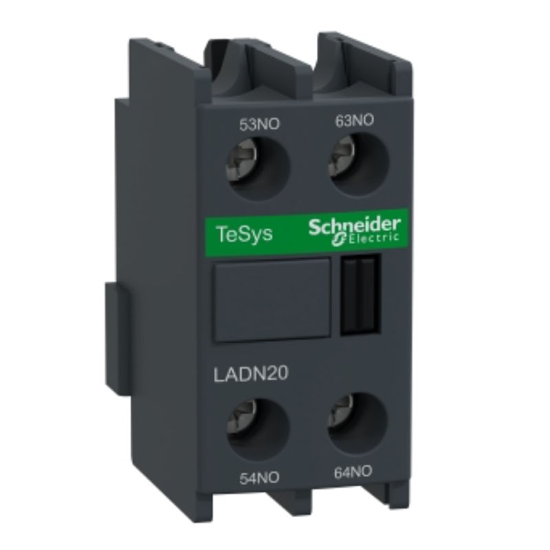 LeLADN20 est un bloc de contacts auxiliaires supplémentaires de Schneider Electric pour les contacteurs TeSys D et TeSys F. Bloc monté en façade, il dispose de 2 contacts momentanés NO jusqu'à 10 A 690V AC. Montage frontal facile par clip, garantissant une fiabilité et une durabilité élevées.