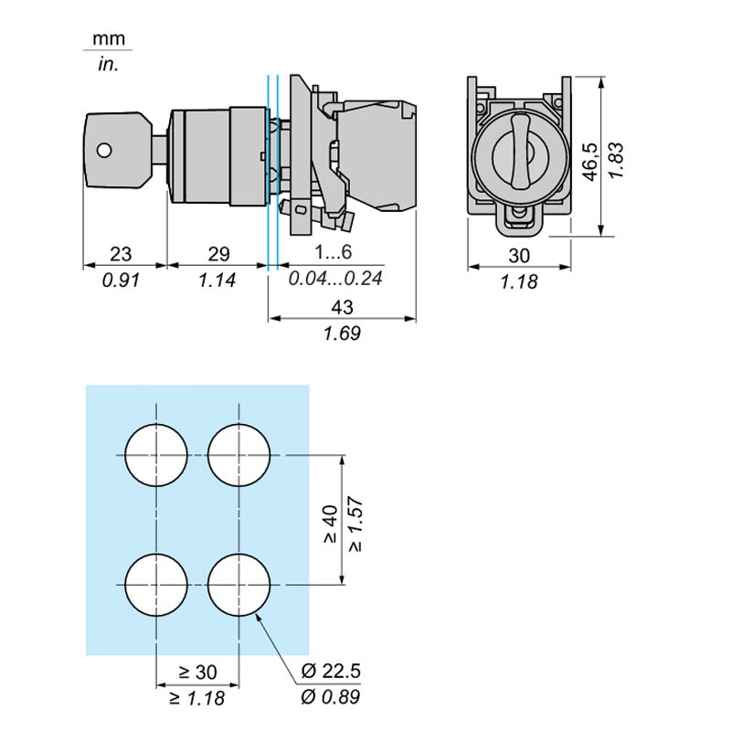 Sélecteur de clé télémécanique Schneider, avec les caractéristiques suivantes :