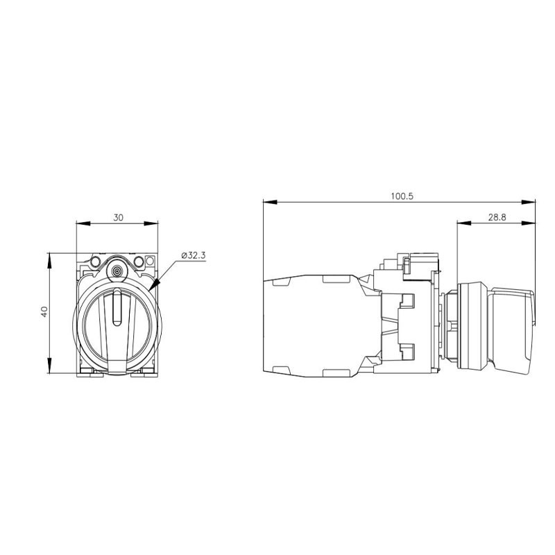 Sélecteur lumineux Siemens avec les caractéristiques suivantes :
