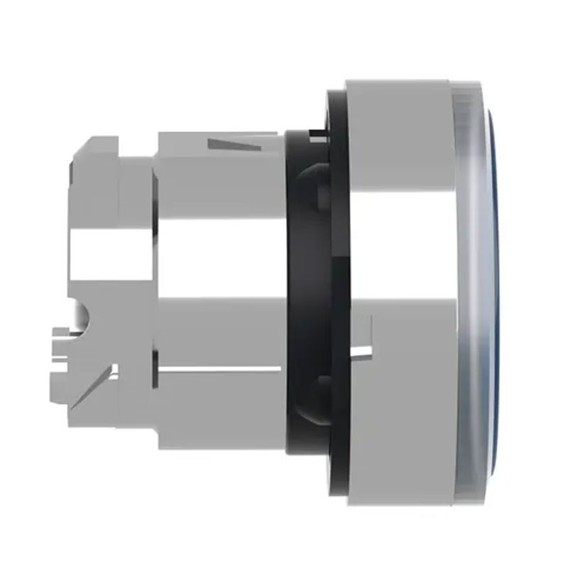 Tête de bouton Télémécanique Schneider bleue lumineuse série Harmony XB4, avec les caractéristiques suivantes :