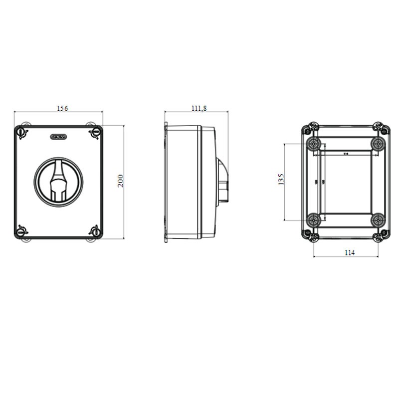 - Dimensions extérieures BxHxD (mm) : 156x200x95