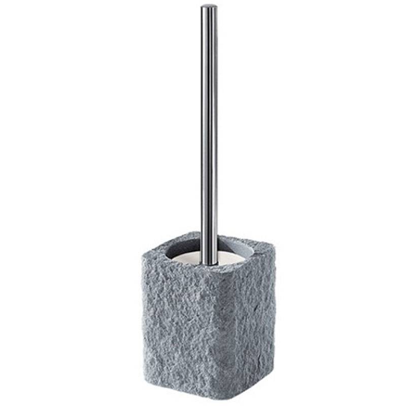 Porte-balai de toilette Gedy Aries gris avec touffe de poils, avec structure en résine et sable et cuvette en acier inoxydable, dimensions : 10,5x10,5x40cm.