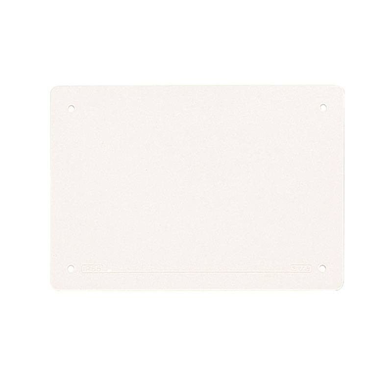 Couvercle de finition étanche et antichoc pour boîtes BL05P, résistance aux chocs IK10. Degré de protection : IP55. Dimensions (L H P) : 184 x 153 x 4 mm.