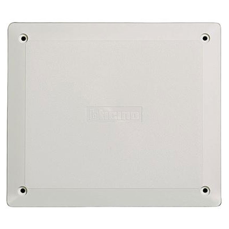 Couvercle de remplacement Bticino, pour la boîte art. 16205. Fabriqué en résine antichoc, complet avec vis de fixation. La surface peut être peinte. Dimensions 130x160 mm.