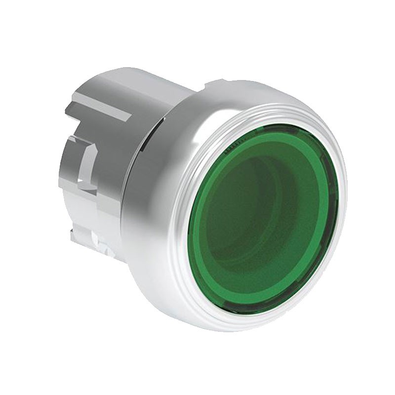 Bouton lumineux Lovato Platinum Rasé, couleur Vert, diamètre métal 22 mm.