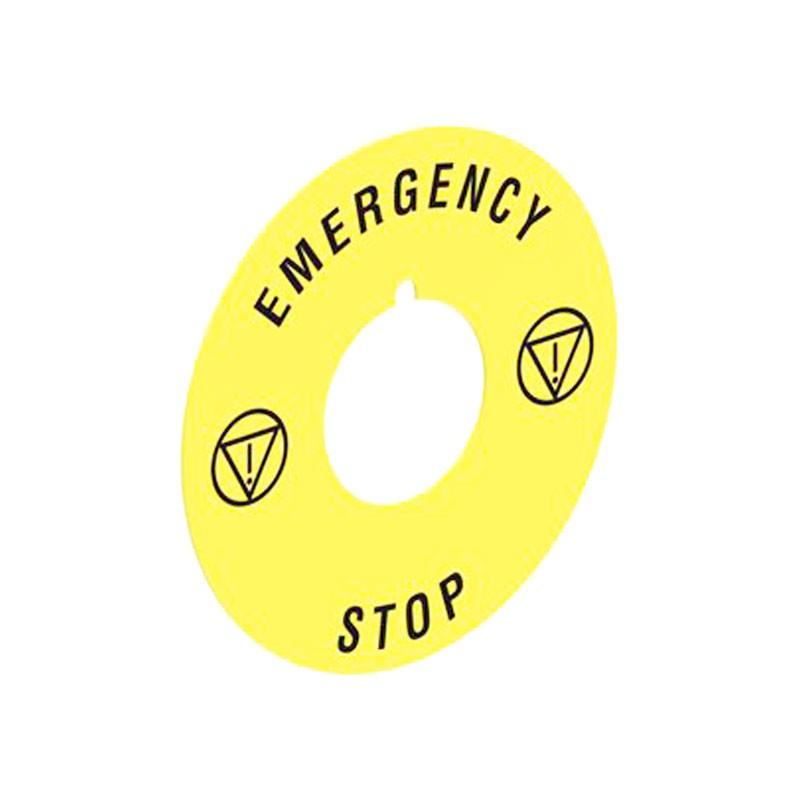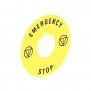 Disque de secours Lovato pour boutons coup de poing, en plastique, diamètre 60 mm, avec inscription EMERGENCY/STOP.